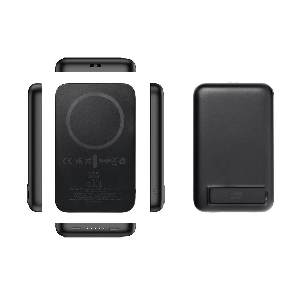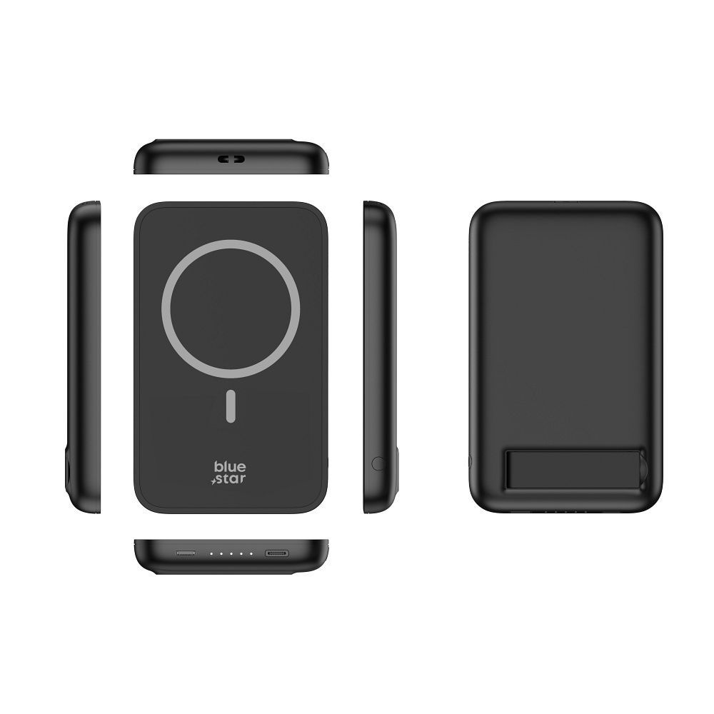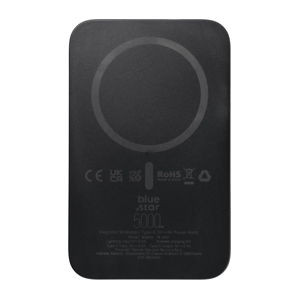 Power bank Blue Star W0553 o pojemności 5 000 mAh to gwarancja szybkiego ładowania w dowolnym miejscu i czasie. Wspiera MagSafe i umożliwia ładowanie AirPods. Posiada podpórkę.