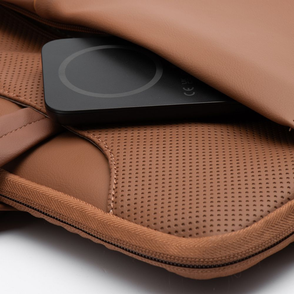 Minimalistyczna, smukła konstrukcja oraz niewielka waga sprawiają, że power bank nadaje się do użycia w trakcie podróży, a 4 diody LED poinformuje Cię o poziomie naładowania urządzenia. wbudowana podpórka pozwala ustawić power bank pods kątem aby móc używać smartfon podczas łądowania indukcyjnego.