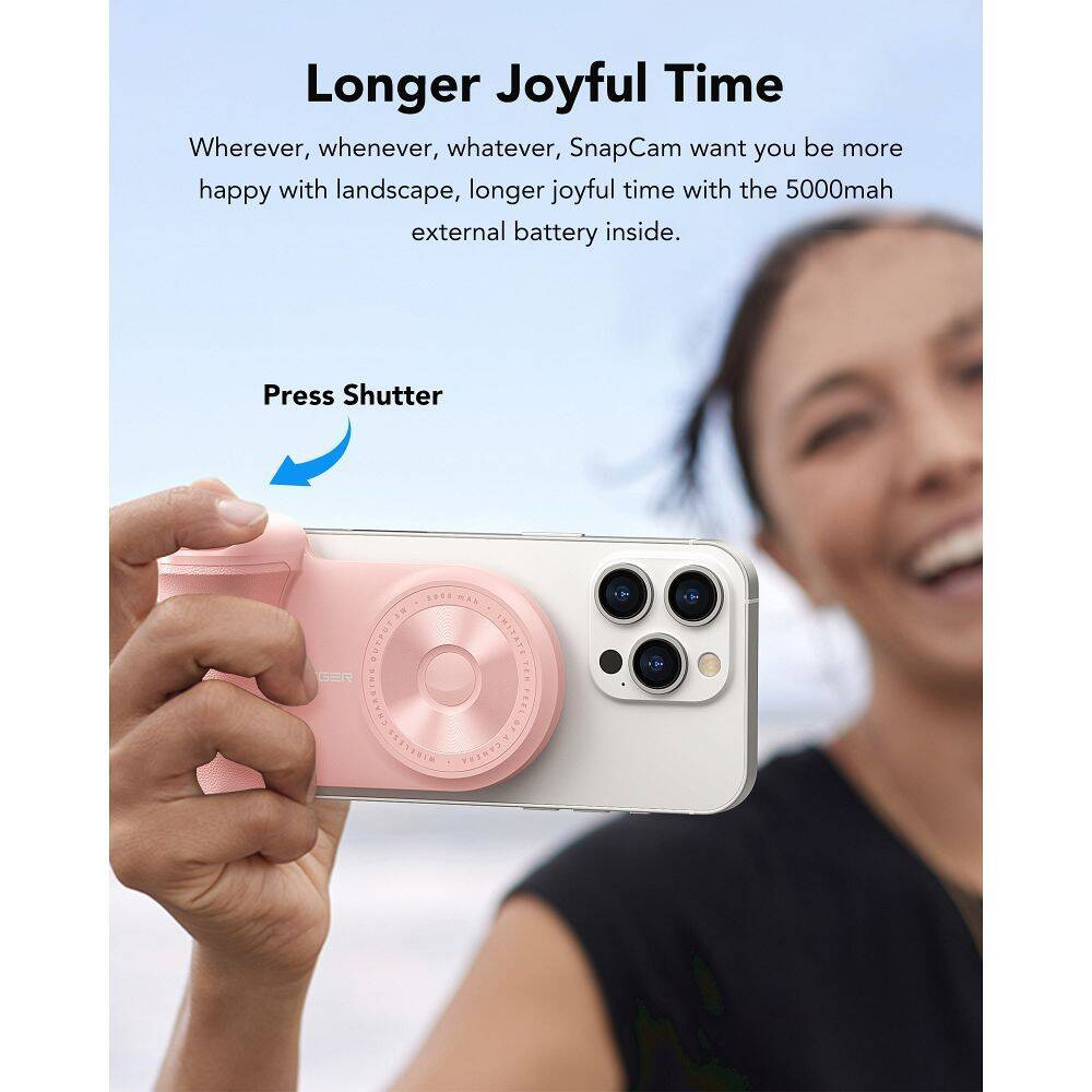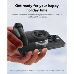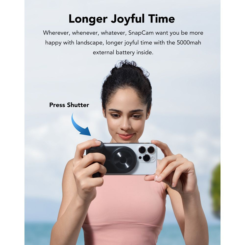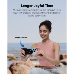 Akcesorium wyposażone jest w funkcję uchwytu ze spustem migawki aparatu, umożliwia wygodne wykonywanie zdjęć, w tym selfie podczas podróży, a wbudowany kontroler Bluetooth do fotografii to doskonałe rozwiązanie dla miłośników autoportretów. Poprawia również chwyt smarfona jak i pomaga ustablizować ujęcie. Świetnie sprawdzi się również podczas długich sesji fotograficznych, kiedy to telefon wymaga dodatkowego źródła energii.