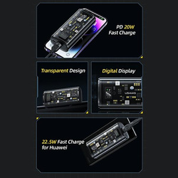 USAMS US-CD189 to niezwykle praktyczny powerbank o nieszablonowym, nowoczesnym designie. Niewielkie gabaryty i kompaktowy rozmiar sprawiają, że jest niesamowicie komfortowy i wygodny w użytkowaniu. Przejrzysty, bardzo estetyczny projekt ukazuje zaawansowaną technologię skrytą za transparentną obudową. Produkt posiada wbudowany wyświetlacz LED który wskazuje aktualny poziom baterii. Powerbank za pomocą wskaźnika wyświetla, czy ładujące się urządzenie wykorzystuje technologię Fast Charging.