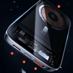 Usams US-CD184 PB67, powerbank o dużej pojemności do 10 000mAh obsługujący szybkie ładowanie PD3.0 + QC3.0. Powerbank został dostosowany do swobodnego ładowania do trzech urządzeń jednocześnie. Urządzenie jest wyposażone w port szybkiego ładowania USB-C, port Lightning i port USB. Wbudowany wskaźnik LED na bieżąco informacje cię o pojemności energii w twoim powerbanku. Powerbank w pełni wykorzystuje technologię MagSafe, jest w pełni kompatybilny z urządzeniami oraz etui z fenkcją MagSafe, jednocześnie nie blokuje aparatu twojego iPhona. Pozwoli Ci to korzystać z telefonu podczas ładowania.
