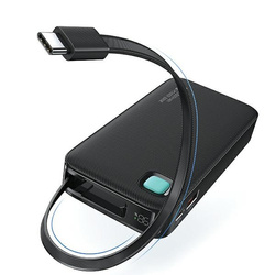 Wyjątkowość tego powerbanka to zintegrowany kabel o końcówce USB-C. Kabel jest bardzo wygodny w codziennym użytkowaniu, zwija się w środku powerbanka dzięki czemu jest łatwy do przechowywania. Regulowana długość – 50 cm - w pełni wystarcza, by wygodnie podpiąć telefon do szybkiego naładowania jego baterii.