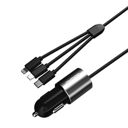 Dudao 3w1 ładowarka samochodowa USB 3,4 A wbudowany kabel Lightning / USB Typ C / micro USB (R5ProN black)