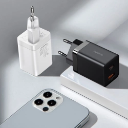 Inteligentna ładowarka sieciowa ze złączem europejskim oraz wsparciem dla licznych technologii szybkiego ładowania. Kompaktowy gadżet wyposażony w 2 porty: USB Typ C oraz USB. Doskonały do odnawiania energii urządzeń mobilnych takich jak smartfony, tablety czy nawet laptopy.