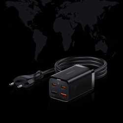 Baseus GaN3 Pro szybka ładowarka sieciowa GaN 2 x USB Typ C / 2 x USB 65W PD, QC4.0+, AFC + kabel USB Typ C - USB Typ C 1m czarny (CCGP040101)