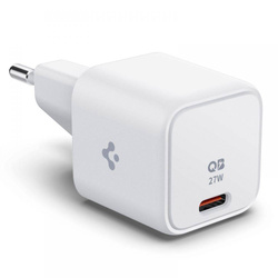 Kompaktowa ładowarka sieciowa Spigen PE2103EU wyposażona w jeden port USB Type-C ze standardem PD o mocy 27W oraz PPS 25W.