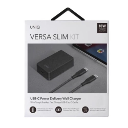 UNIQ Versa Slim ładowarka sieciowa Power Delivery 18W USB-C z plecionym kablem szybkiego ładowania USB-C/USB-C 1,2 m.