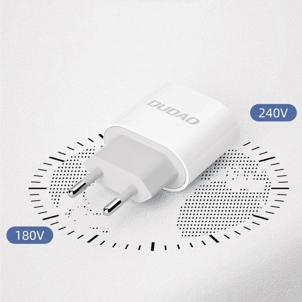 Biała obudowa i minimalistyczny styl sprawiają, że Dudao A14EUC jest nie tylko praktyczna, ale także estetyczna. Ładowarka świetnie komponuje się w różnych wnętrzach, dodając im nowoczesnego akcentu, a zarazem wyróżnia się trwałym wykończeniem.