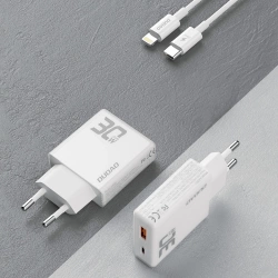 Ładowarka sieciowa GaN Dudao A30EUL 30W USB-A / USB-C - biała + kabel USB-C - Lightning