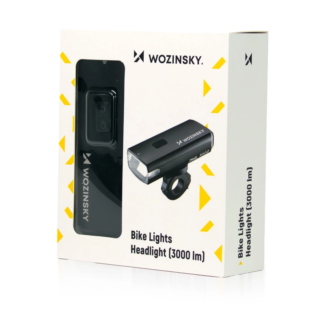 Lampka rowerowa przednia Wozinsky + kabel USB-C (3000 lm) - czarna