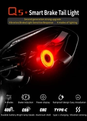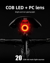 • Lampka rowerowa Rockbros Q5 tylna z inteligentnym systemem stop - czarna