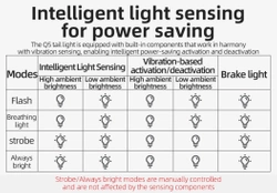 Cztery tryby świecenia lampki rowerowej Rockbros Q5