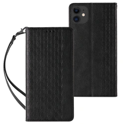 • Magnet Strap Case etui do iPhone 13 pokrowiec portfel + mini smycz zawieszka czarny