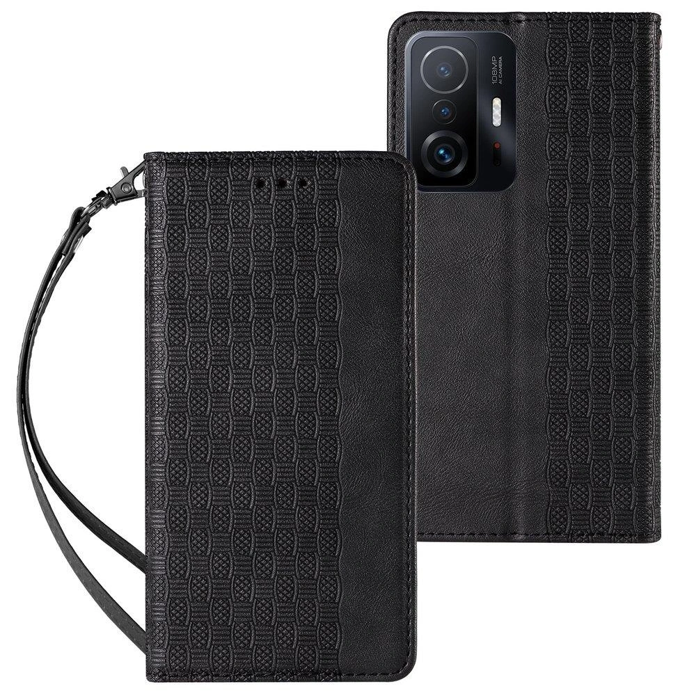 Magnet Strap Case etui do Xiaomi Redmi Note 11 pokrowiec portfel + mini smycz zawieszka czarny