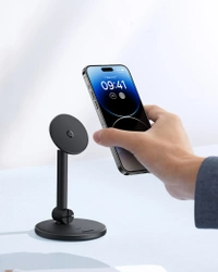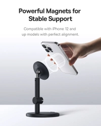 Uchwyt jest kompatybilny z telefonami iPhone 12 i nowszymi, co sprawia, że jest doskonałym wyborem dla użytkowników najnowszych technologii. Wymiary uchwytu to 95 x 95 x 165mm, co pozwala na umieszczenie go na niemal każdym stole czy biurku, nie zajmując przy tym zbyt wiele miejsca.