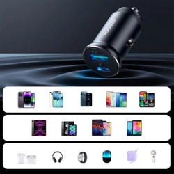 Mini ładowarka samochodowa Joyroom JR-CCN05 o mocy do 30W z 2 portami USB-A i USB-C - czarna