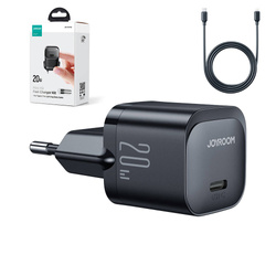 Mini ładowarka USB C o mocy do 20W (wspiera Power Delivery) Joyroom JR-TCF02 w zestawie z kablem USB C - Lightning | czarna