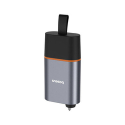 Baseus SharpTool to idealne akcesorium dla kierowców. Sprężynowy młotek bezpieczeństwa od pozwoli łatwiej uwolnić się z samochodu w sytuacji zagrażającej życiu. Wystarczy zdjąć zatyczkę i mocno docisnąć końcówkę młotka do szyby, żeby szybko i bezpiecznie ją wybić. Akcesorium dodatkowo posiada wbudowany nóż do rozcinania pasów bezpieczeństwa oraz latarkę ładowaną przez złącze USB-C. Produkt będzie przydatny w każdym samochodzie niezależnie od sytuacji. Z uwagi na małe rozmiary nie zabiera dużo przestrzeni.