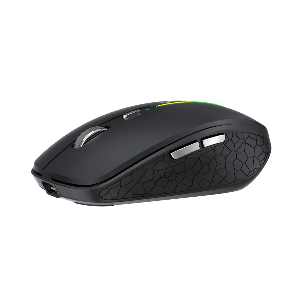 Postaw na styl, wygodę i precyzję z podświetlaną myszą bezprzewodową Wozinsky WMGK-1132! Dzięki dwóm trybom łączności – 2.4 GHz oraz Bluetooth 5.1 – możesz swobodnie przełączać się między urządzeniami, bez plączących się kabli. Mysz została wyposażona w pulsujące podświetlenie RGB, co nie tylko nadaje jej efektowny wygląd, ale także zwiększa przyjemność użytkowania, zwłaszcza po zmroku. Trzy poziomy czułości DPI (800/1200/1600) pozwalają dostosować pracę do własnych potrzeb – od biura po rozrywkę. Ergonomiczny kształt, 6 przycisków i antypoślizgowa gumowana powłoka zapewniają pewny chwyt i maksymalny komfort. Do tego pojemny akumulator 500 mAh i możliwość ładowania przez USB sprawiają, że jest to idealne rozwiązanie do codziennej pracy i mobilnego użytkowania.