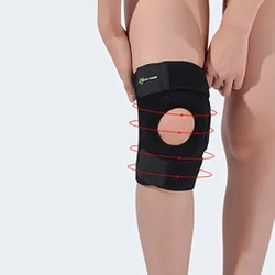 - Zapewnia stabilizację stawu kolanowego. Ochraniacz mocno trzyma staw, co minimalizuje ryzyko urazów podczas intensywnych ćwiczeń.