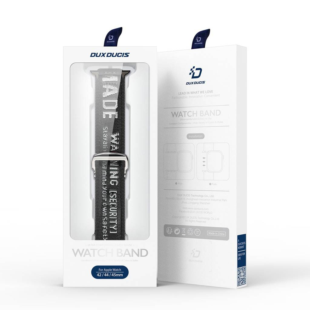 Nylonowy pasek Apple Watch Ultra, SE, 8, 7, 6, 5, 4, 3, 2, 1 (49, 45, 44, 42 mm) z serii Dux Ducis Outdoor opaska na rzep w kolorze czarno-srebrnym