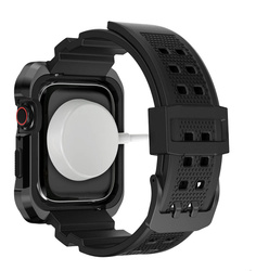 2w1 pasek Apple Watch 8, 7, 6, 5, 4, 3, 2, 1 44mm z serii Kingxbar CYF134 z pancernym stalowym etui w kolorze czarnym