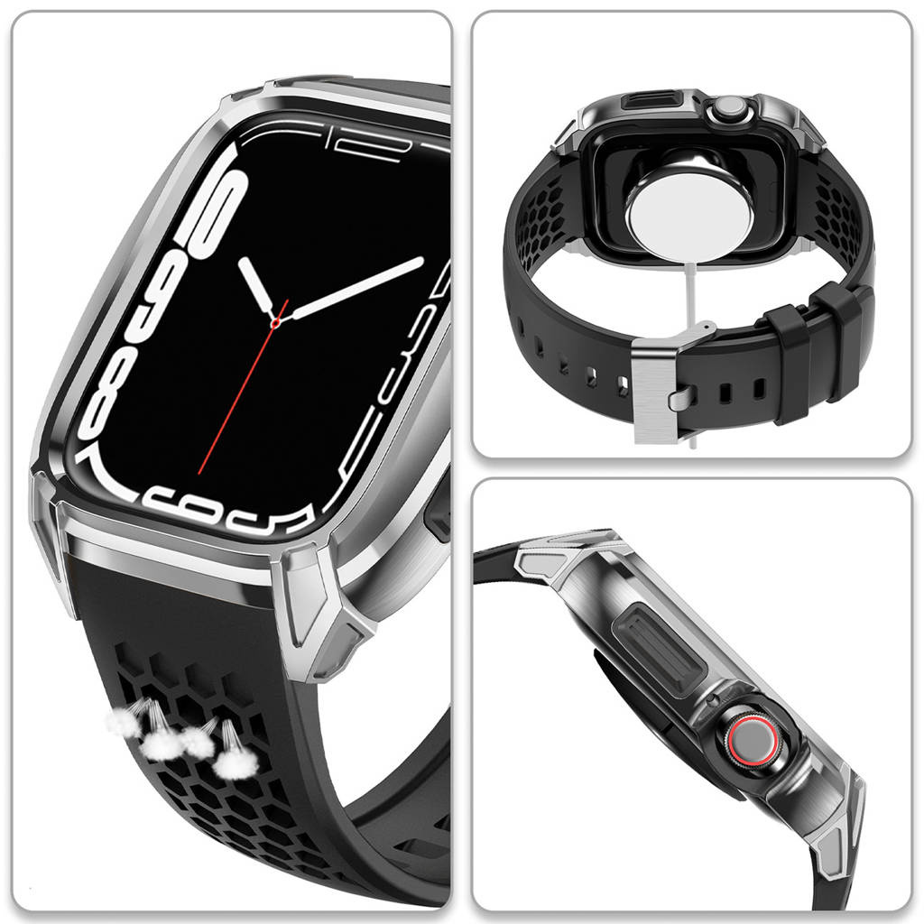 2w1 pasek Apple Watch Ultra, SE, 8, 7, 6, 5, 4, 3, 2, 1 (49, 45, 44, 42 mm) z serii Kingxbar CYF148 z pancernym stalowym etui w kolorze srebrnym