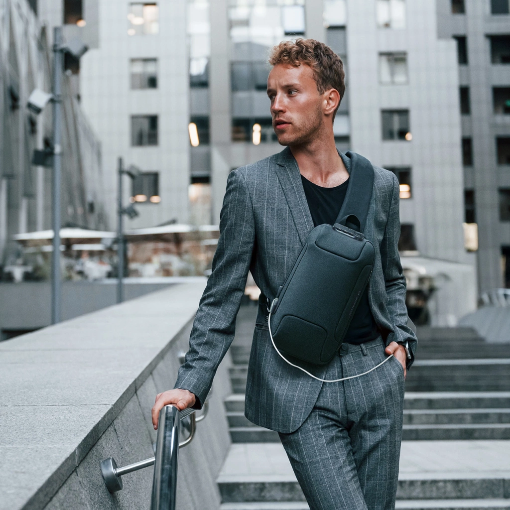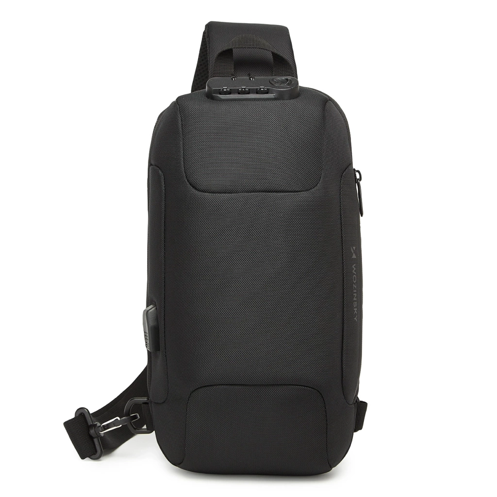 Plecak miejski Wozinsky Premium na jedno ramię, antykradzieżowy z organizerem i USB - czarny