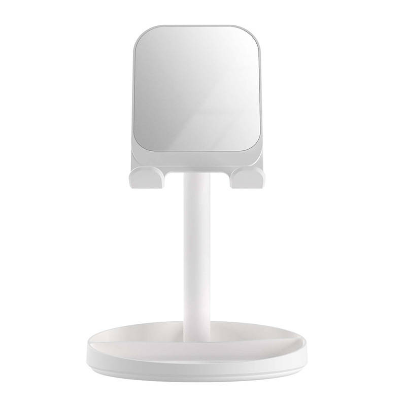 To nie koniec zalet podstawki Nillkin Desktop Stand. Wyposażono ją w lusterko, które możesz wykorzystać podczas codziennych czynności. Dodatkowym udogodnieniem są przegródki na jej podstawie, w których możesz umieścić różne niewielkie przedmioty – takie jak biżuterię, klucze czy słuchawki.