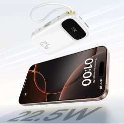 • Powerbank Baseus EnerFill FC31 20000mAh 22.5W z wyświetlaczem cyfrowym i 2 wbudowanymi kablami (USB-C + Lightning) - biały