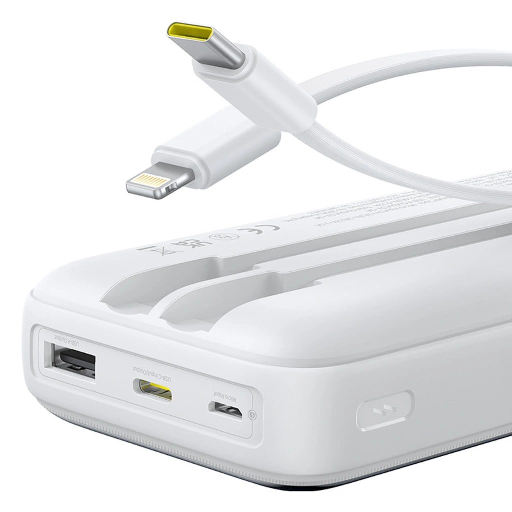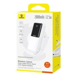 Powerbank Baseus Lipow 20000mAh 22,5W z dwoma wbudowanymi kablami – biały