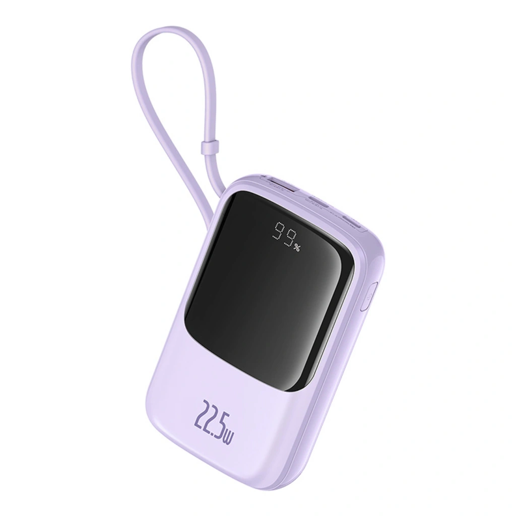 Powerbank Baseus Qpow Pro+ 10000mAh 22.5W z wbudowanym kablem USB-C z wyświetlaczem - fioletowy