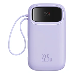 • Powerbank Baseus Qpow2 20000mAh 22,5W z podwójnym kablem z wyświetlaczem cyfrowym + kabel Baseus Simple USB-C 3A 0,3m (biały) - fioletowy
