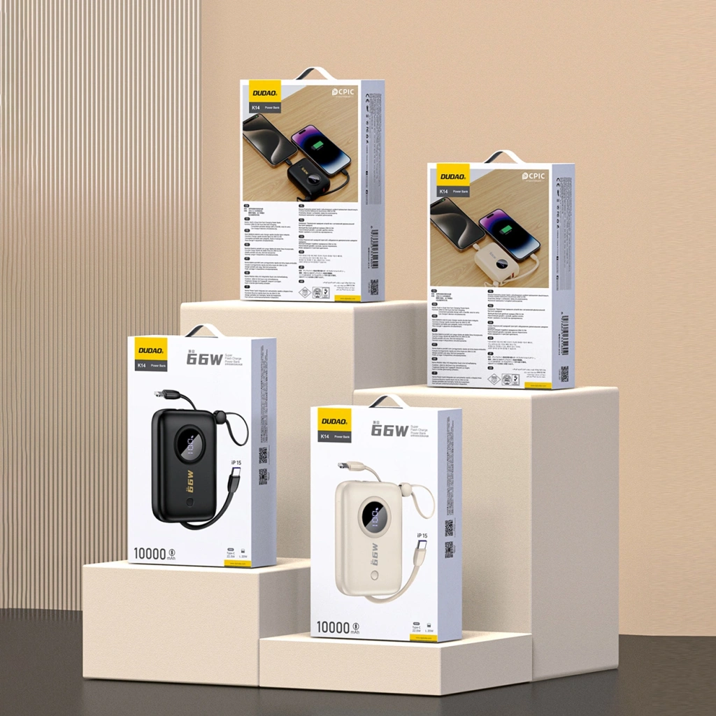 Powerbank Dudao K14 z łatwością zmieści się w każdej torbie czy plecaku. Jego niewielkie rozmiary i lekka konstrukcja czynią go idealnym urządzeniem dla osób ciągle w ruchu. Dzięki wygodnemu uchwytowi na nadgarstek, który także pełni funkcję kabla, powerbank jest zawsze pod ręką. Możesz go używać w każdej sytuacji — czy to w podróży, na wyjeździe służbowym czy podczas codziennych dojazdów.