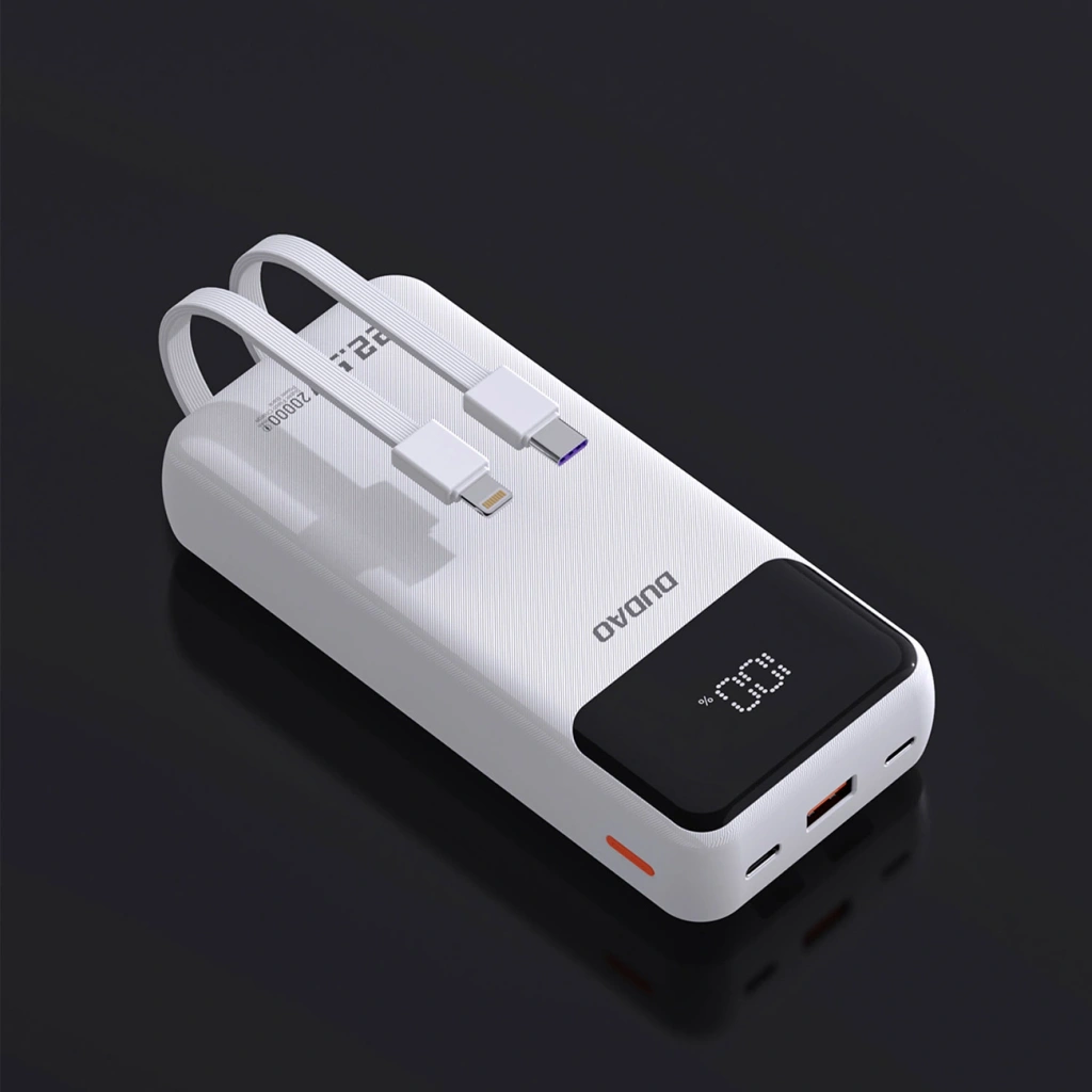 • Powerbank Dudao K15Pro 20000mAh 22.5W PD USB-C / USB-A / wbudowane kable Lightning i USB-C - biały