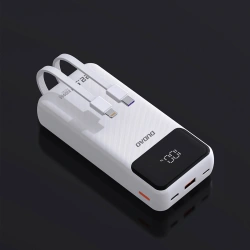 Powerbank Dudao K15Pro o pojemności 20000 mAh i mocy do 22.5W, z portami USB-C / USB-A i wbudowanymi kablami Lightning i USB-C - biały