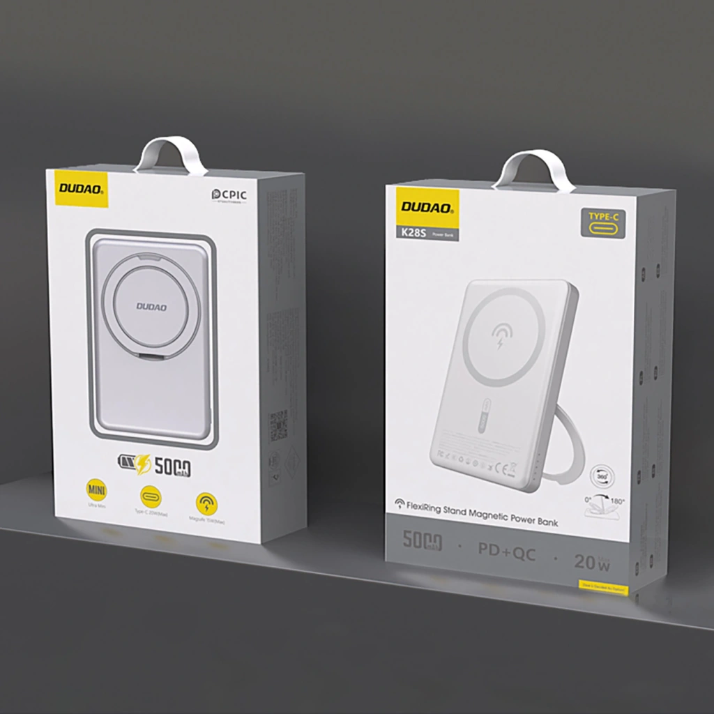 Najważniejsze zalety Powerbank Dudao 10000mAh K28 PD20W z MagSafe z metalową obudową i pierścieniem-podstawką - srebrny: