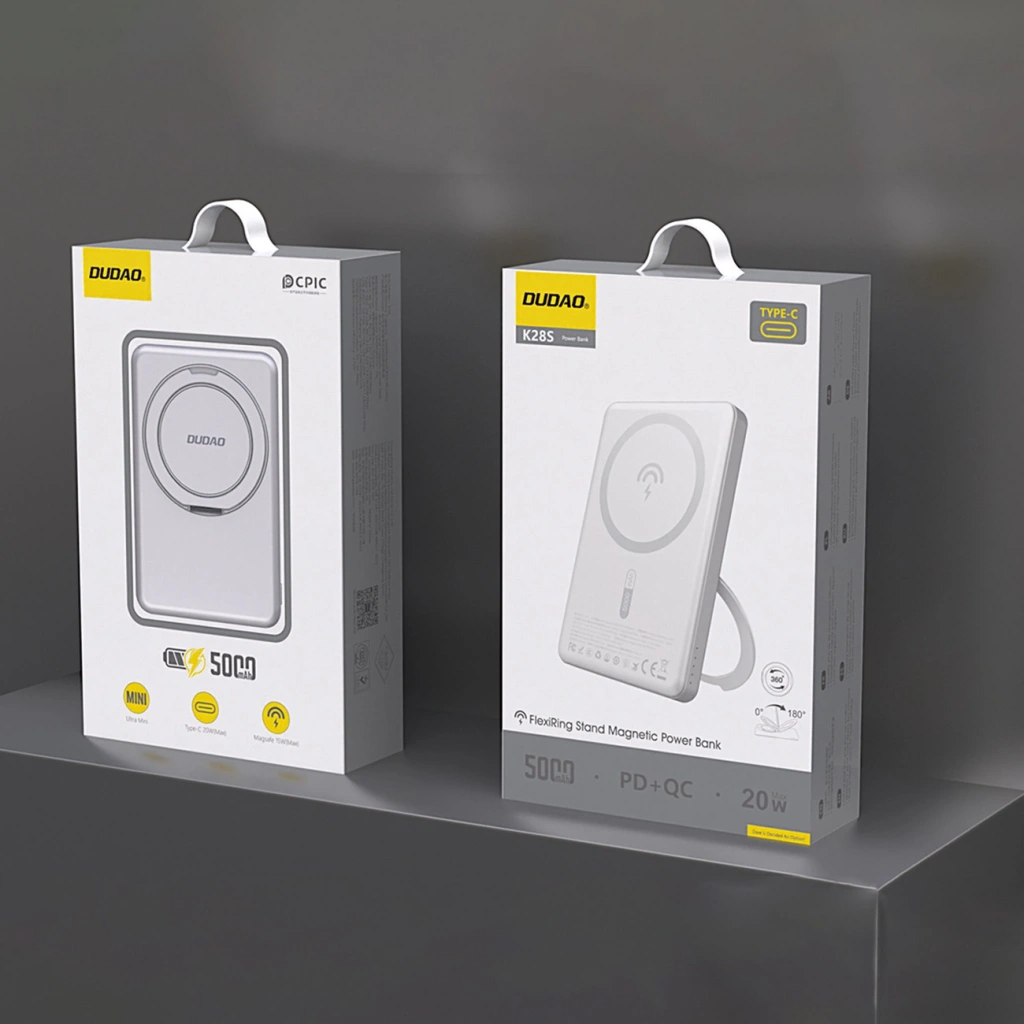 • Powerbank Dudao K28S 20W PD 5000mAh z MagSafe i podstawką - srebrny