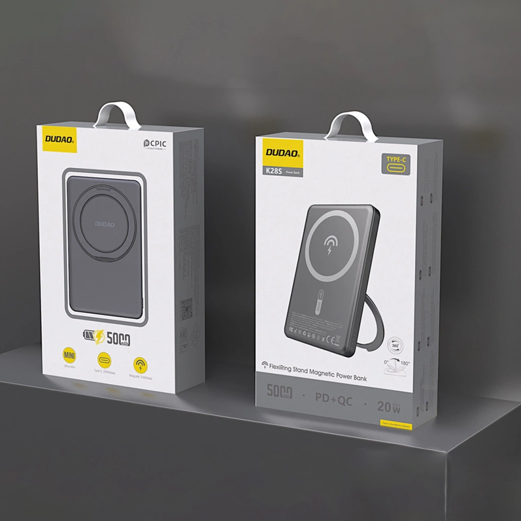 Powerbank Dudao K28S 20W PD 5000mAh z MagSafe i podstawką - szary