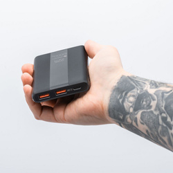 Powerbank wspiera technologie szybkiego ładowania Quick Charge 3.0 oraz Power Delivery na poziomie 22,5 W i tym samym pozwala ograniczyć czas oczekiwania na uzupełnienie energii w urządzeniach.