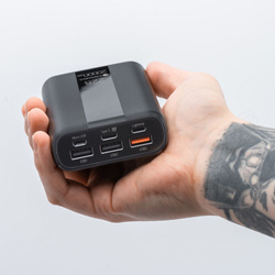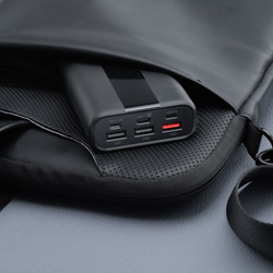 Wyposażony w trzy porty USB-A oraz jeden port USB-C umożliwia jednoczesne ładowanie aż czterech urządzeń, co sprawia, że jest idealnym towarzyszem dla osób, które potrzebują niezawodnego źródła zasilania w podróży czy podczas codziennego użytkowania. Ponadto sam powerbank można naładować za pomocą portów Micro-USB, Lightning oraz USB-C.