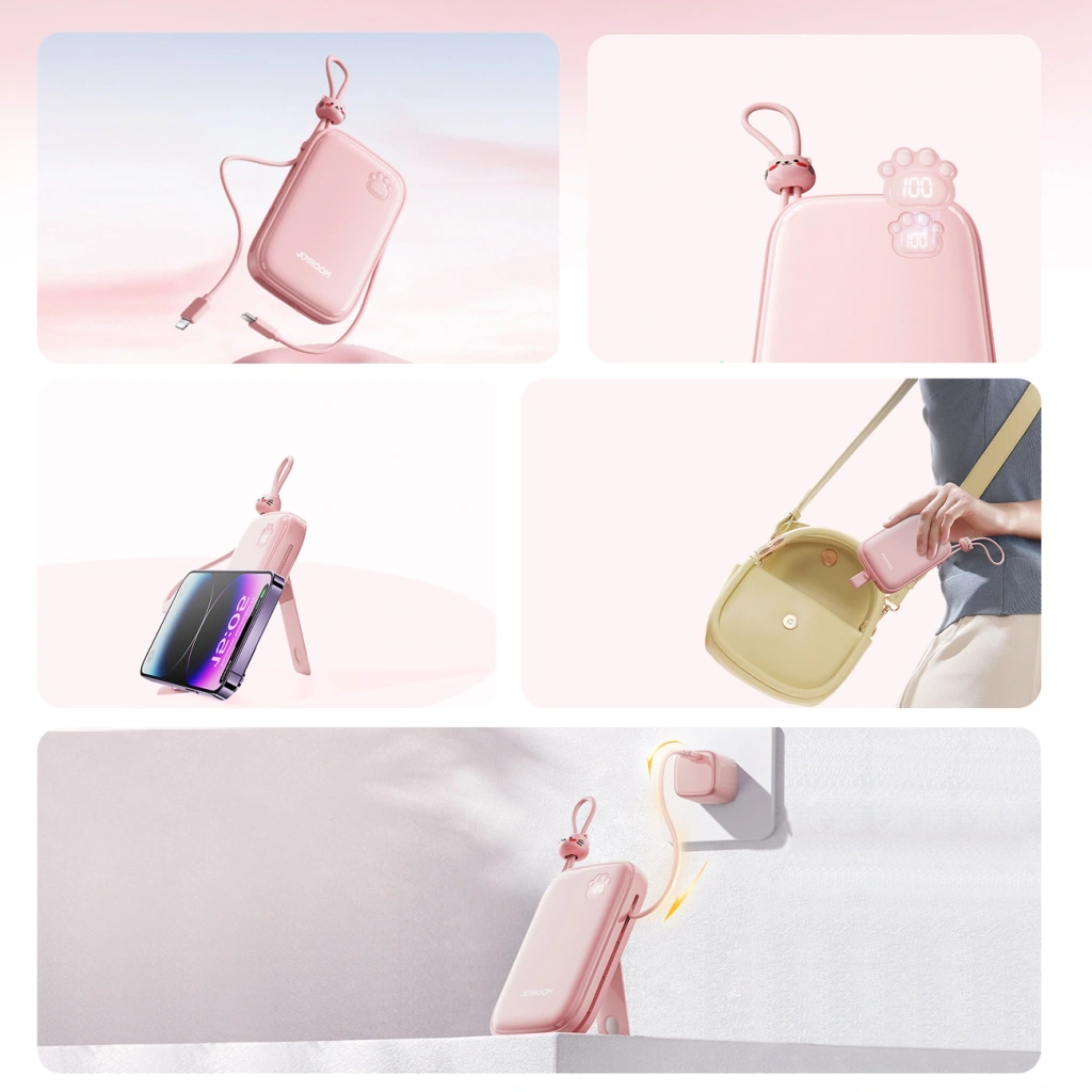 Powerbank Joyroom JR-L008 Plus Cutie Series 22.5W 20000mAh ze stojakiem - różowy