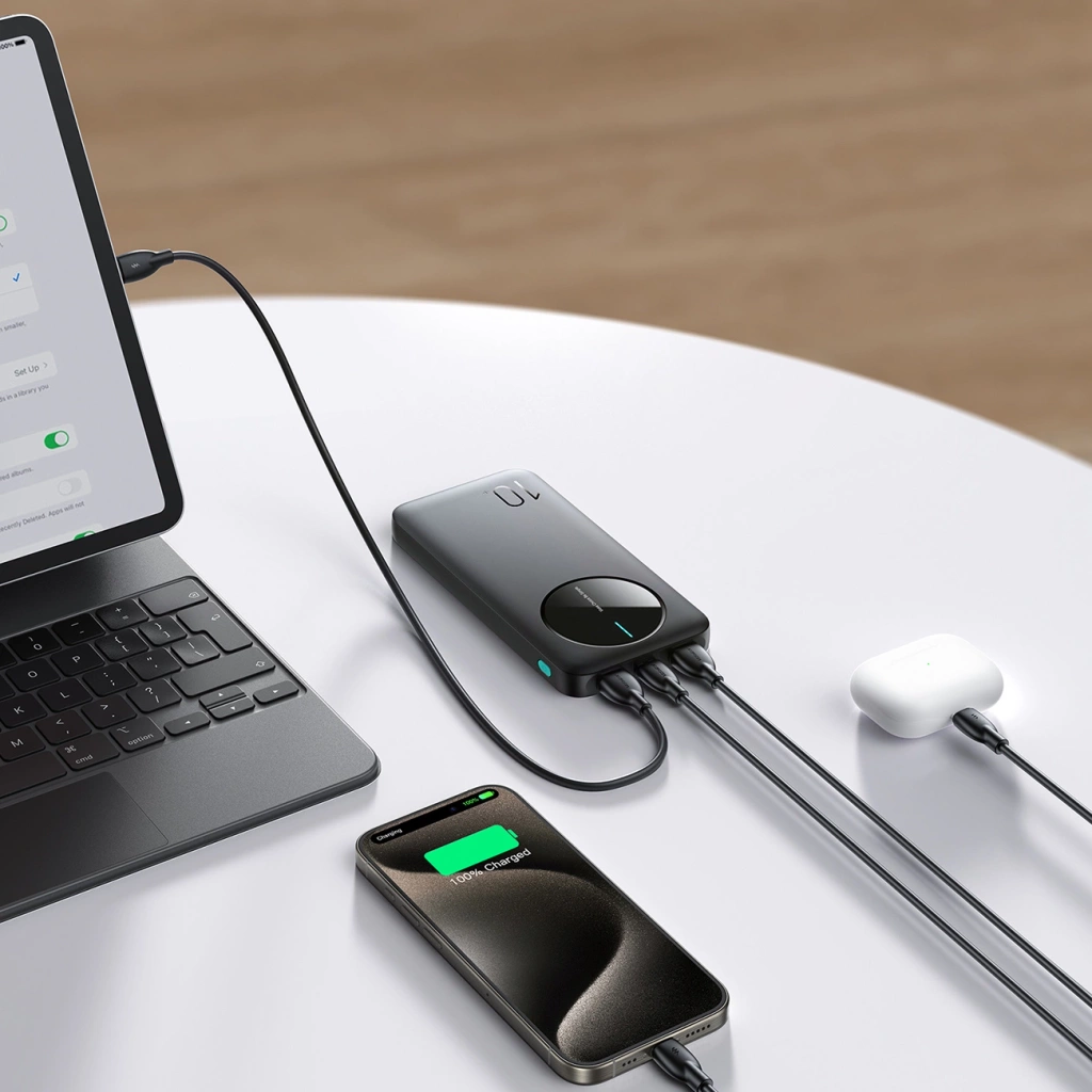 Czy kiedykolwiek zdarzyło Ci się, w jednym momencie rozładowało się więcej niż jedno urządzenie? Dzięki powerbankowi Joyroom JR-PBF12 możesz ładować aż trzy urządzenia w tym samym czasie - posiada aż trzy porty ładowania, w tym uniwersalny USB-C. Niezależnie od tego, czy to smartfon, tablet czy słuchawki, wszystkie mogą być zasilane jednocześnie.