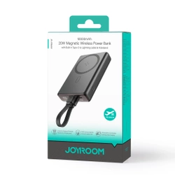 Magnetyczny powerbank Joyroom JR-PBM01 o pojemności 10000 mAh i mocy do 20W, z podstawką + kabel Lightning - USB-C - czarny