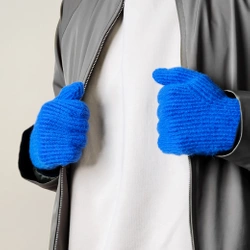 Rękawiczki plecione do telefonu z wycięciem na palce - niebieskie