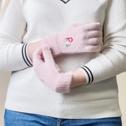 Rękawiczki zimowe do telefonu damskie z bałwankiem i choinką - różowe