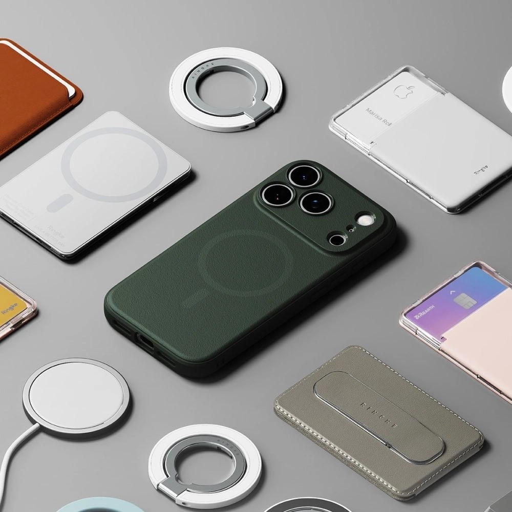Etui z serii Onyx Magnetic Magsafe od firmy Ringke wykonane jest z miękkiego i wytrzymałego tworzywa termoplastycznego, dodatkowo wzmocnionego na krawędziach by jak najlepiej chronić urządzenie. Nieco podniesiona forma obudowy wokół aparatu i ekranu chroni go przed zarysowaniami, unosząc telefon tuż nad powierzchnią płaską. Posiada osłony na przyciski, wycięcia na porty i smycz.