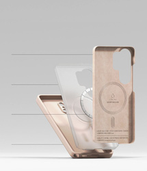 Ringke Silicone MagSafe to smukłe i wytrzymałe etui o hybrydowej konstrukcji. Trójwarstwowa struktura łączy miękką silikonową powłokę zewnętrzną z wzmacniającą ramką PC od wewnątrz, wykończoną miękką mikrofibrą chroniącą tył telefonu przed zarysowaniami. Materiał idealnie wpasowuje się w kształt urządzenia, zapewniając pełen dostęp do wszystkich portów i przycisków. Silikonowa powierzchnia jest przyjemna w dotyku i gwarantuje pewny chwyt, minimalizując ryzyko wyślizgnięcia się telefonu z dłoni podczas codziennego użytkowania.