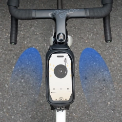 Przeźroczysty schowek chroni urządzenie i pozwala na wygodne korzystanie z nawigacji czy aplikacji treningowych w trakcie jazdy.