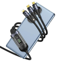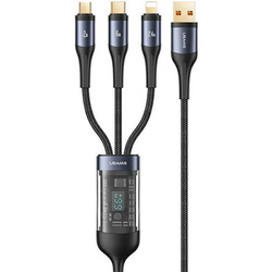 Kabel USAMS US-SJ582 U83 to produkt wysokiej jakości, o mocnej konstrukcji i niemal uniwersalnym zastosowaniu. Akcesorium zostało wyposażone w trzy końcówki (1x złącze lightning, 1x microUSB i 1x USB-C), dzięki czemu umożliwia jednoczesne ładowanie 3 urządzeń.